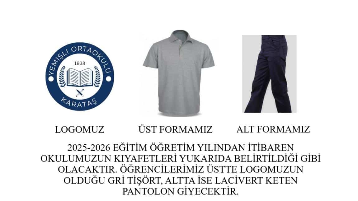 2025-2026 Eğitim-Öğretim yılından itibaren kullanılacak olan Okul Kıyafetlerimiz.